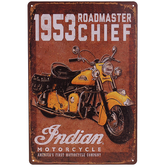 Metalen Plaatje - Indian Motor Roadmaster Chief 1953 - Geel - 20x30cm