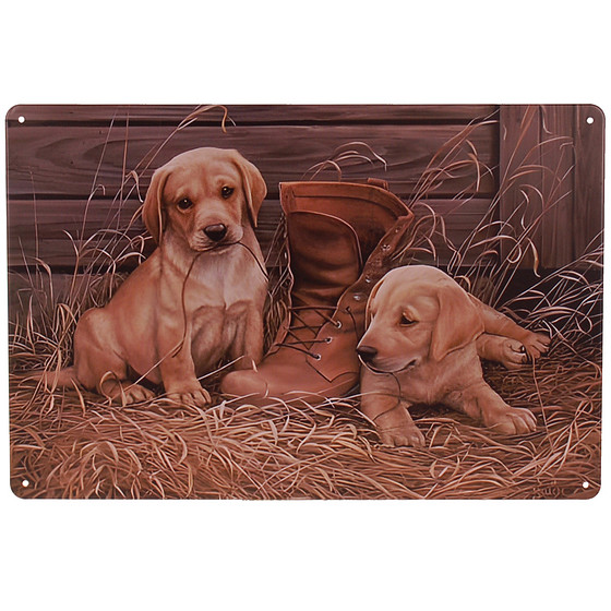 Metalen Plaatje - Labrador Puppys met Oude Schoen - 20x30cm