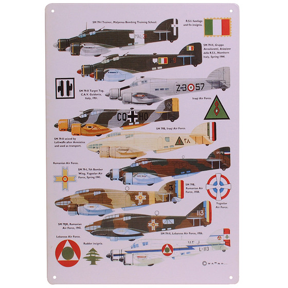 Metalen Plaatje - SM-79 Italiaanse Bommenwerper/Transportvliegtuig - Diverse modellen - 20x30cm