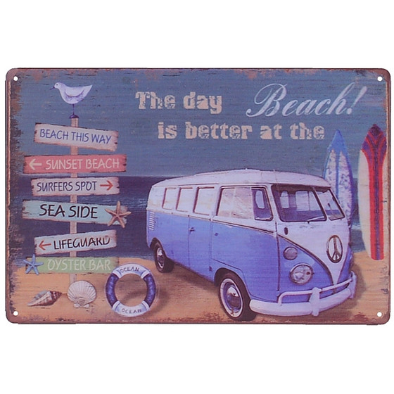 Metalen plaatje - Volkswagen Kampeerbusje Beach