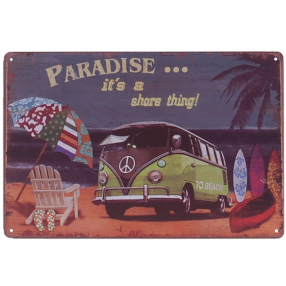 Metalen plaatje - Volkswagen Kampeerbusje Paradise