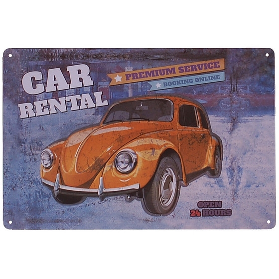 Op het bordje staat de tekst 'Car Rental'.
