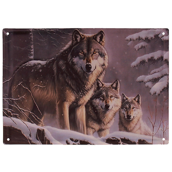 Metalen Wandbord 3D Relief - Wolven in Besneeuwd Bos - Homedeco - 40,5x28cm