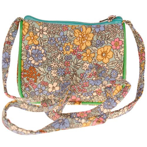 Mini schoudertasje groen met gekleurde bloemetjes - 11x10 cm