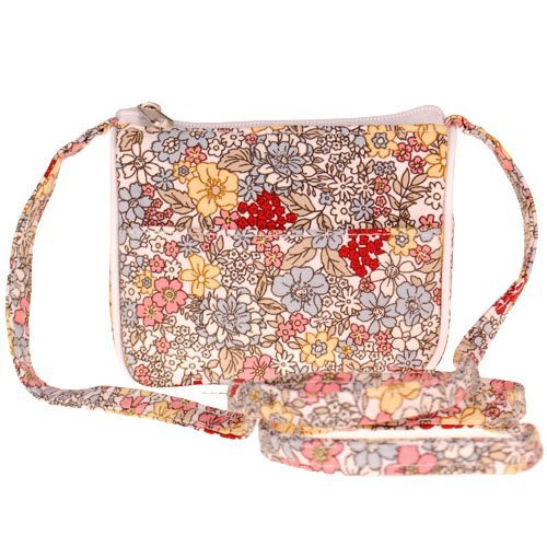 Een wit mini schoudertasje met leuke gekleurde bloemetjes.