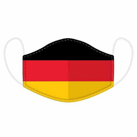 Herbruikbaar mondkapje met de Duitse vlag om bijvoorbeeld te dragen in het openbaar vervoer. Of bij sociale- en maatschappelijke gelegenheden in de openbare ruimte.