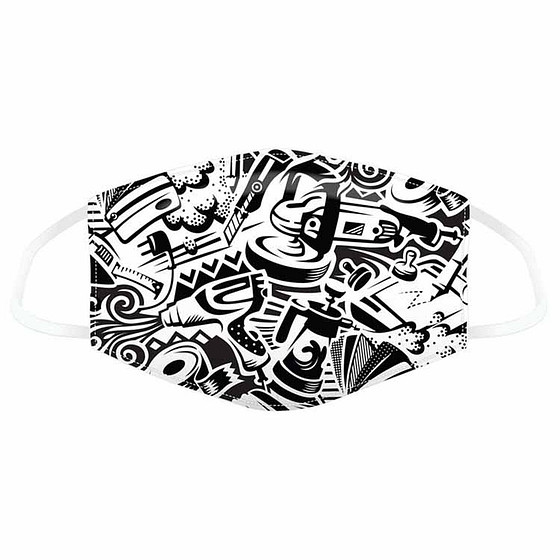 Herbruikbaar mondkapje met graffiti print om bijvoorbeeld te dragen in het openbaar vervoer. Of bij sociale- en maatschappelijke gelegenheden in de openbare ruimte.