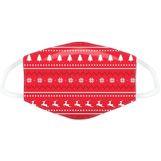 Herbruikbaar mondkapje met afbeeldingen van kerstfiguurtjes om bijvoorbeeld te dragen in het openbaar vervoer. Of bij sociale- en maatschappelijke gelegenheden in de openbare ruimte.