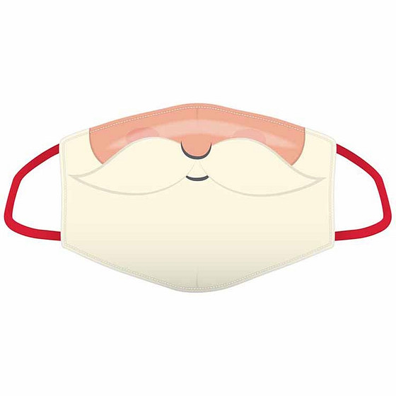 Herbruikbaar mondkapje met een afbeelding van de baard van de Kerstman om bijvoorbeeld te dragen in het openbaar vervoer. Of bij sociale- en maatschappelijke gelegenheden in de openbare ruimte.