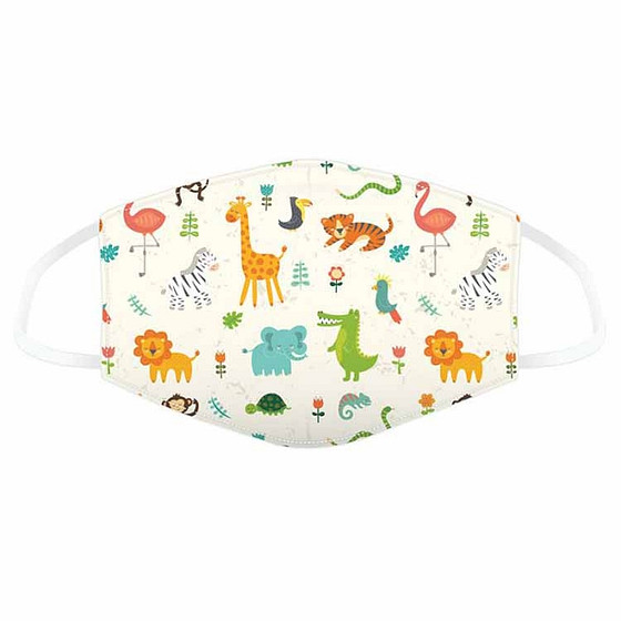 Herbruikbaar wit mondkapje met dieren om bijvoorbeeld te dragen in het openbaar vervoer. Of bij sociale- en maatschappelijke gelegenheden in de openbare ruimte.