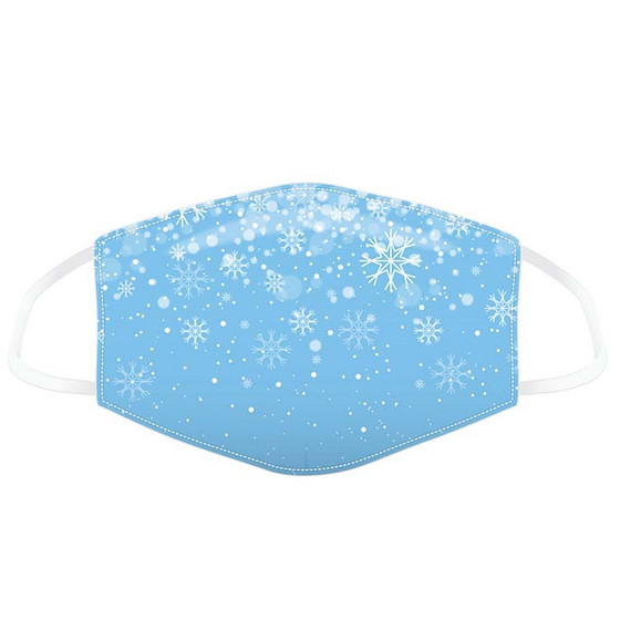 Herbruikbaar mondkapje met afbeeldingen van sneeuwvlokjes om bijvoorbeeld te dragen in het openbaar vervoer. Of bij sociale- en maatschappelijke gelegenheden in de openbare ruimte.