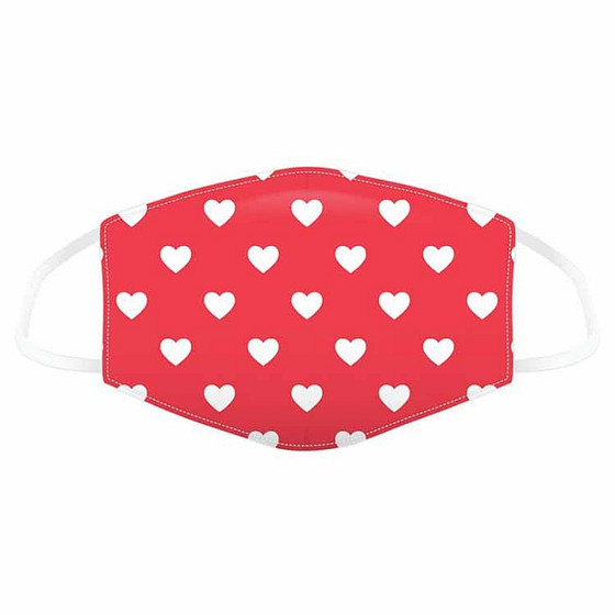 Herbruikbaar mondkapje met hartjes om bijvoorbeeld te dragen in het openbaar vervoer. Of bij sociale- en maatschappelijke gelegenheden in de openbare ruimte.