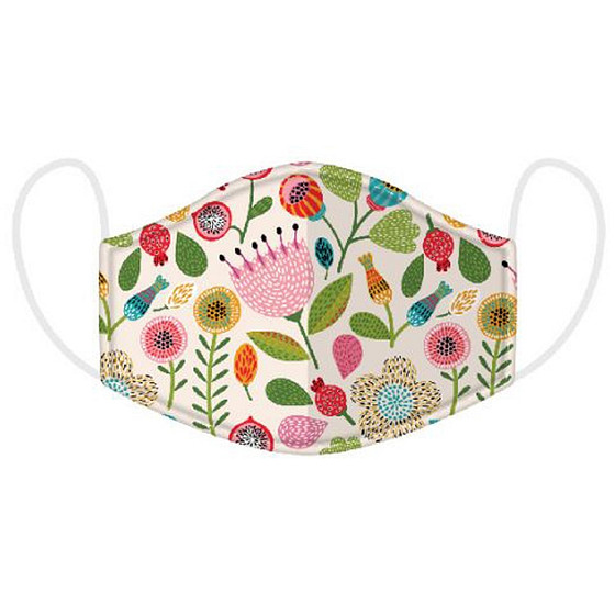 Herbruikbaar mondkapje wit met bloemen en bladeren om bijvoorbeeld te dragen in het openbaar vervoer. Of bij sociale- en maatschappelijke gelegenheden in de openbare ruimte.