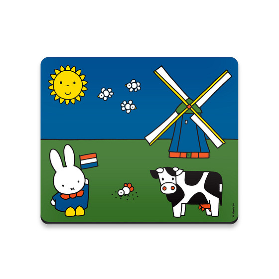 Muismat - Nijntje in Boerenkiel - Nederlands Landschap Weiland - Molen/Vlag/Koe/Zon - 20x34cm