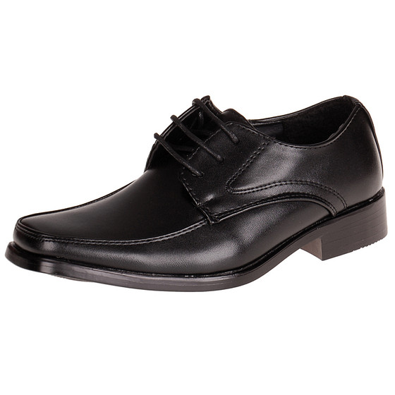 Chique zwarte apron jongensschoenen met een stijlvolle veter. Deze betaalbare nette schoenen voor jongens maken elk feestelijk outfit compleet. Het casual design van deze schoenen voor een bruidsjonker zorgt voor een klassieke uitstraling zonder echt veel op te vallen. De schoen heeft een wat lage hak en de neus is vlak afgewerkt. Ook zeer geschikt om te dragen onder kostuums voor Schoolgala, Kerstgala of andere Party's waar nette schoenen gewenst zijn.