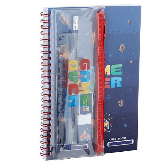 Notitieboek A5 gelinieerd met 6-delig schrijfsetje - Game Over