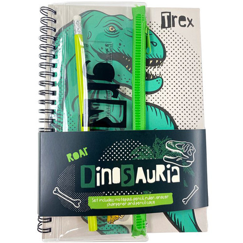 Notitieboekje A5 Ring Gebonden - Dinosaurussen - met 6-delige Schrijfset