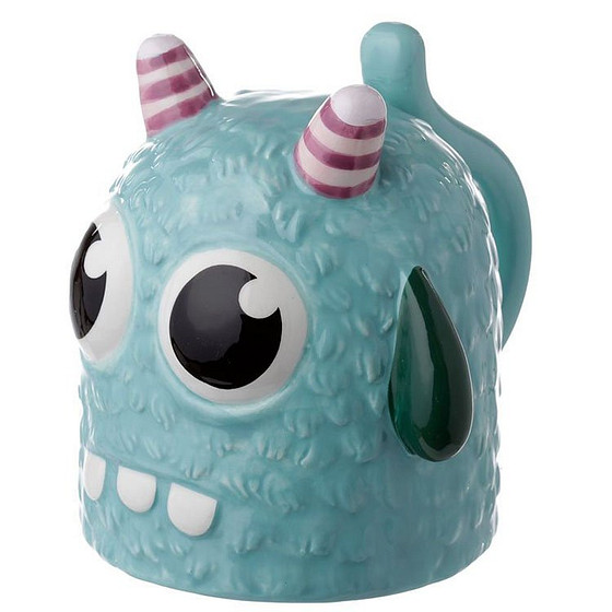 Geweldige grote aardewerk beker in de vorm van een blauw monster/Monstarz. De beker staat ondersteboven op de pootjes. Zeer sprekende uitdrukking en prachtig in kleur afgewerkt. De beker heeft een robuust handvat.