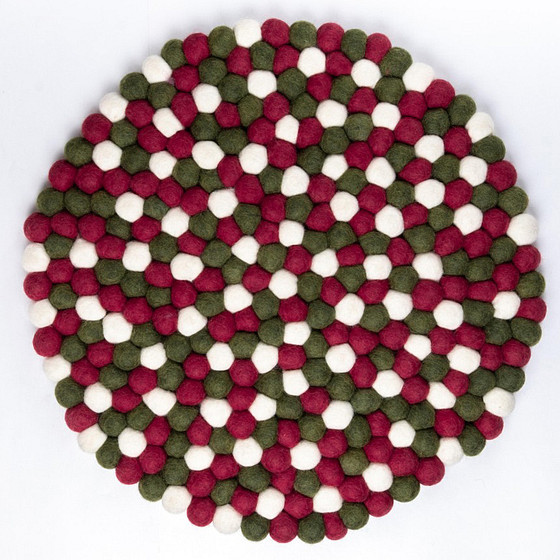 Onderzetter Vilt - Rood/Groen/Wit - 40 cm Rond - Balletjes - Fairtrade