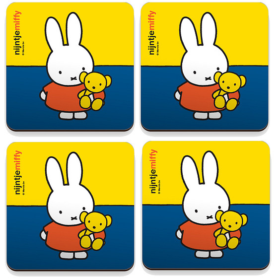 Onderzetters Set 4-Delig - Nijntje met Beer - Geel/Blauw/Wit/Oranje - Miffy - Kurk - 19,5x19,5cm