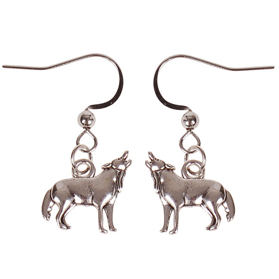 Oorbellen Zilverkleurig - Hangertje Huilende Wolf zilverkleurig 1,8cm