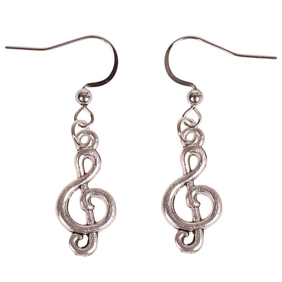Oorbellen Zilverkleurig - Hangertje Muzieksleutel zilverkleurig 2cm