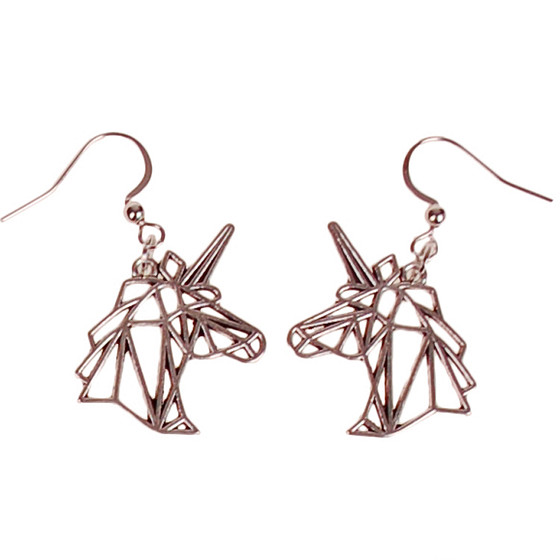 Oorbellen Zilverkleurig - Hangertjes Eenhoorn Hoofd Geometrische Lijnen