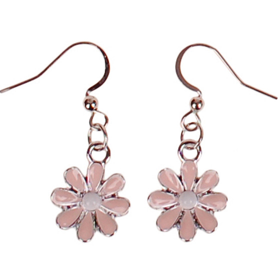 Oorbellen Zilverkleurig - Hangertjes Roze Emaille Bloemetje Zilverkleurig 1,5cm