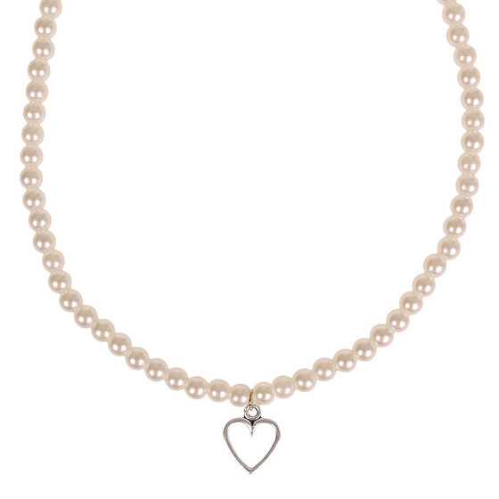 Parelketting Ivoorkleurige Imitatie Parels 6mm - Kindermaat - Hangertje Hartje zilverkleurig 1,2cm