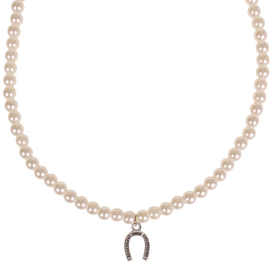 Parelketting Ivoorkleurige Imitatie Parels 6mm - Kindermaat - Hangertje Hoefijzer zilverkleurig 1cm