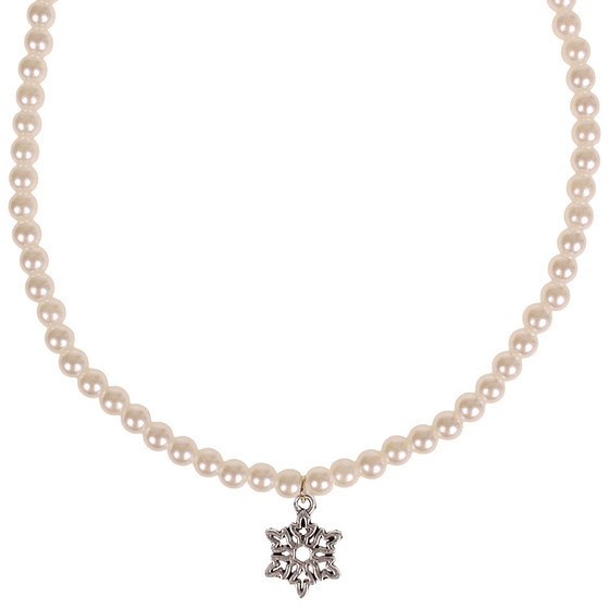 Parelketting Ivoorkleurige Imitatie Parels 6mm - Kindermaat - Hangertje sneeuwvlokje zilverkleurig 1,2cm