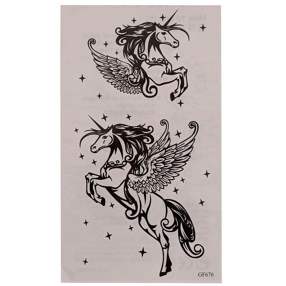 Plaktatoeage - Neptattoo - Eenhoorn/Unicorn & Sterren - Zwart - 8x6cm & 10x9cm