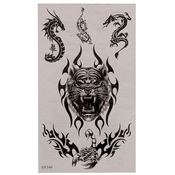 Plaktatoeage - Neptattoo - Japanse Draken & Tijger & Schorpioen - Zwart - 4-5,5x2cm & 9x6cm & 9x4cm