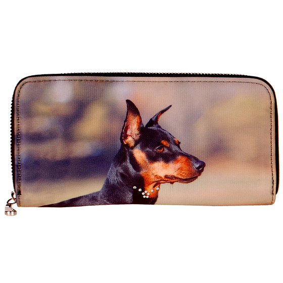 Leuke grote portemonnee met een afbeelding van een hond. De portemonnee is gemaakt van een zachte, soepele maar stevige stof. Op de stof staat, aan beide kanten, een kwalitatief hoogwaardige print. Aan 1 zijde is de print versierd met enkele kleine strass steentjes.