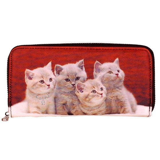 Leuke grote portemonnee met een afbeelding van poesjes.