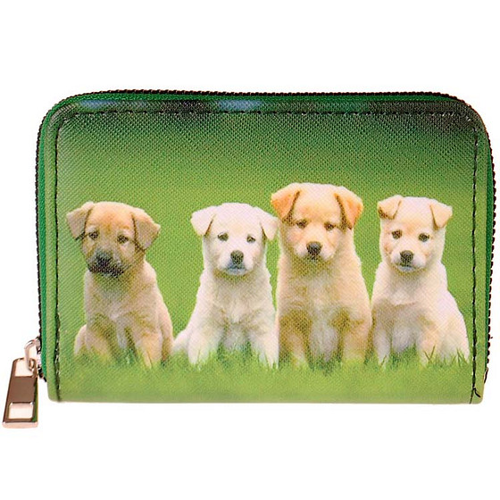 Portemonnee Meisjes - 4 Pups in Gras - Rondrits - Muntvak & Pasvakjes - 13x9x2cm