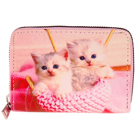 Portemonnee Meisjes - Kittens in Breiwerk Roze - Rondrits - Muntvak & Pasvakjes - 13x9x2cm