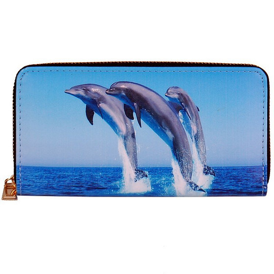 Portemonnee met 3 dolfijnen die uit water springen - 19,5x10cm