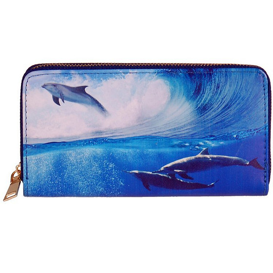 Portemonnee met 3 dolfijnen in een golf - 19,5x10cm
