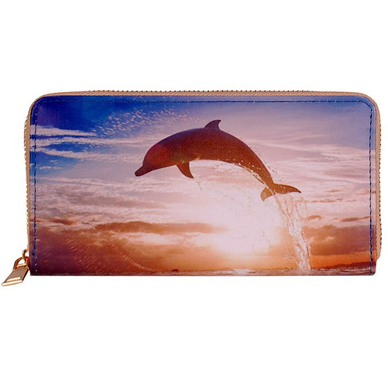 Portemonnee met dolfijn die uit water springt bij zonsondergang - 19,5x10cm