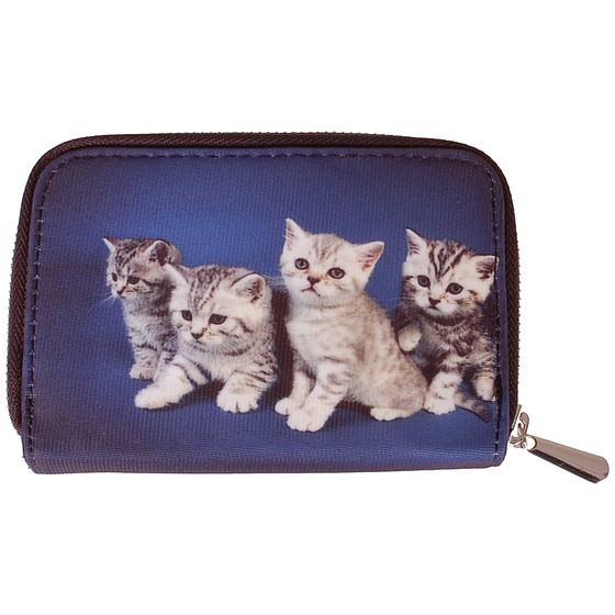 Handzame portemonnee met aan beide kanten een afbeelding van een poes. De leuke foto is van een mooie kwaliteit en gedrukt op de zachte maar stevige stof. Om de portemonnee te openen maak je gebruik van een robuuste rits.