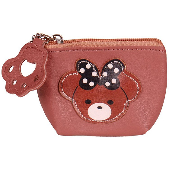 Portemonneetje rits Beer met strik Donker Terracotta - 11x9cm
