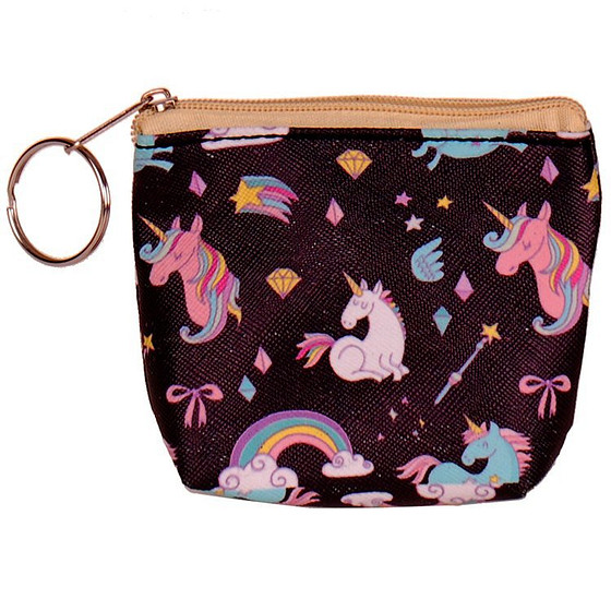 Portemonneetje rits eenhoorn zwart - 8x9cm