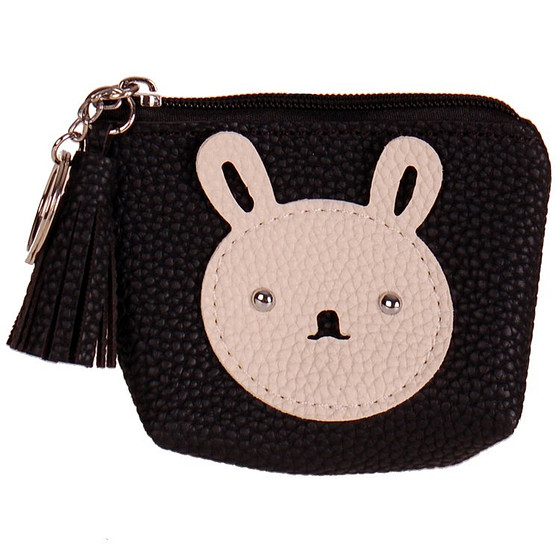 Portemonneetje rits met Konijnenhoofd zwart - 11x9cm