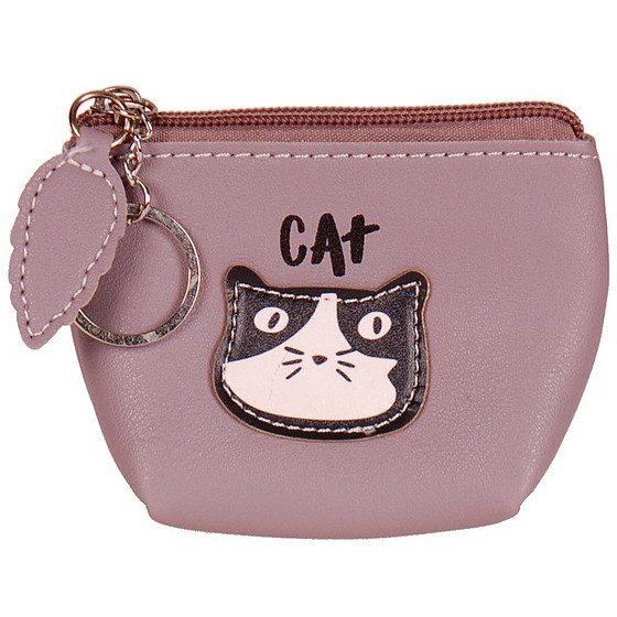 Portemonneetje rits met Poezenhoofd/Cat Taupe/Grijs - 11x8cm