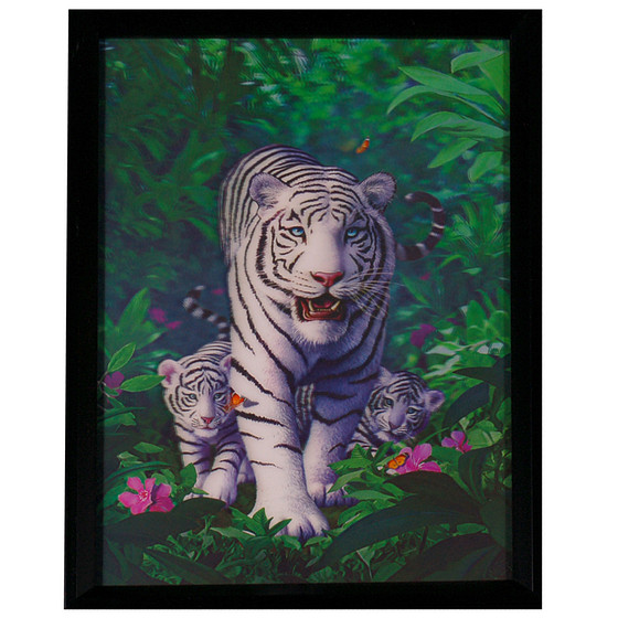 Poster 3D met Lijst - Witte Tijger met Welpen Jungle & Bloemen - 43x33cm