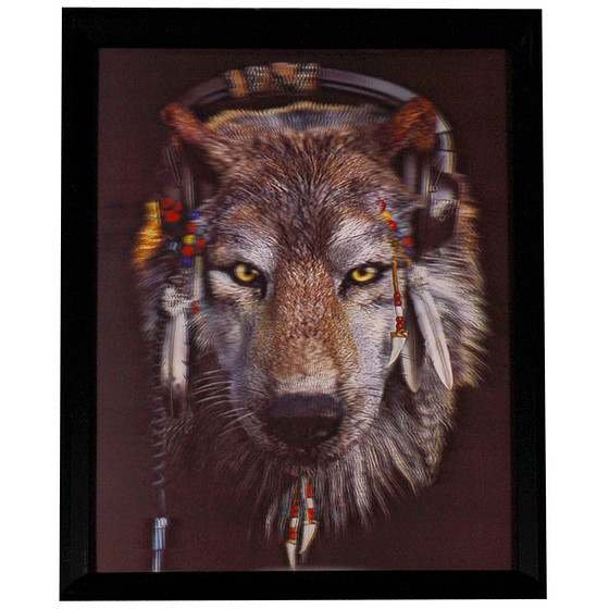 Poster 3D met Lijst - Wolf Indian Look & Headphone - 43x33cm