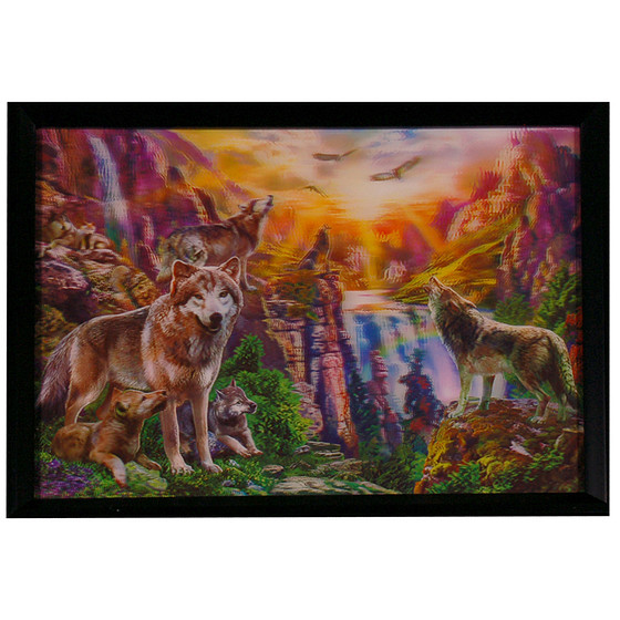Poster 3D met Lijst - Wolven met Welpen in Bergen - 43x33cm