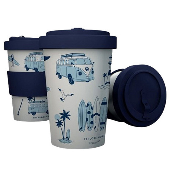 Reisbeker/Travel Cup - Volkswagen T1 Camper Explore More - RPET & Siliconen - Donkerblauw - 400ml