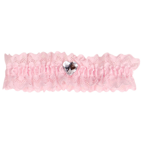 De band is gemaakt van roze elastisch kant met een strass steentje in de vorm van een hartje.
